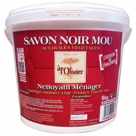 Le savon noir mou A L'OLIVIER est un nettoyant ménager multi usage, composé d'huiles végétales. Convient aussi bien pour le lavage des sols, du linge et de la vaisselle, que pour la rénovation des carrelages. détient un excellent pouvoir dégraissant.